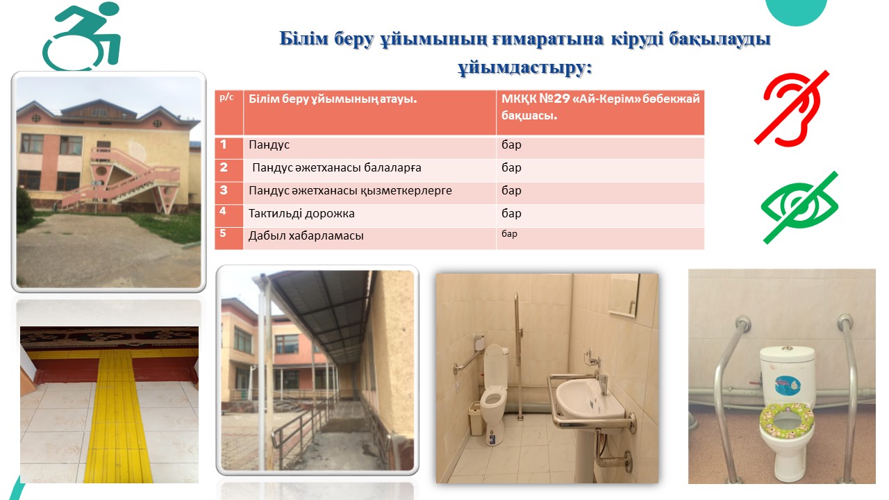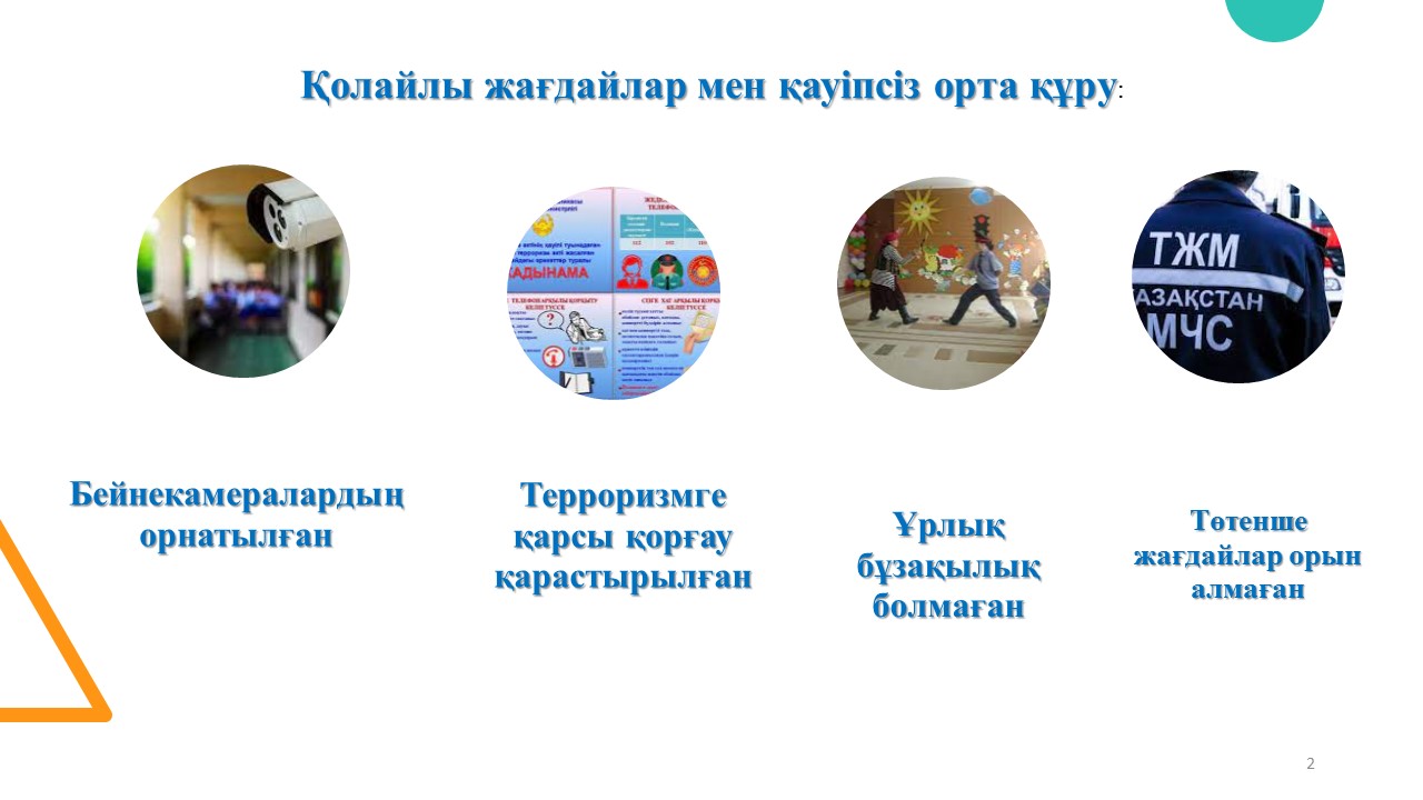 Балабақша ғимараты ішкі және сыртқы бақылау бейне камераларымен толық жабдықталған. Күні бойы ғимарат ішінде бөбекжай-бақша қызметкерлері кезекшілікке тұрады.