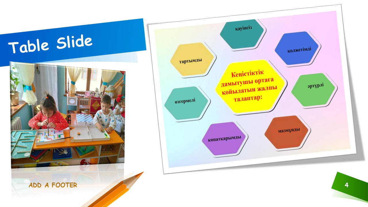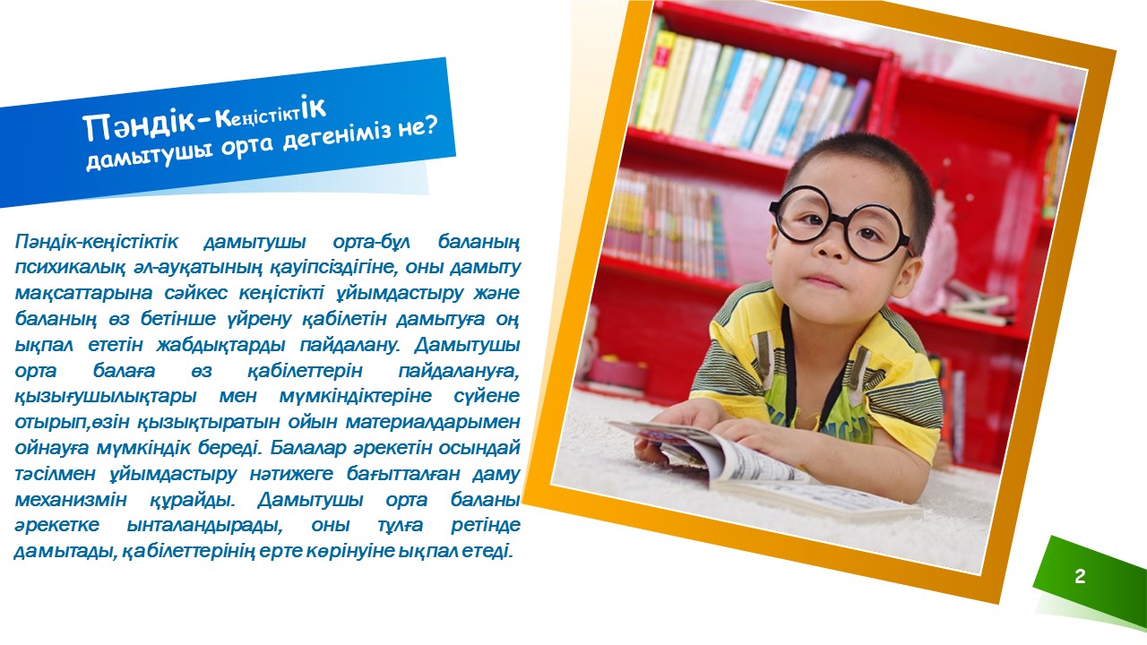 | 1 | Пәндік - кеңістіктік дамытушы орта |