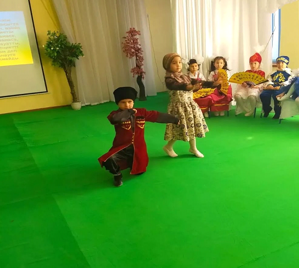 Халықаралық Үркер зияткерлік марафонының жеңімпазы Ақкөгершін тобының бүлдіршіні Январь Дарханды медальмен марапаттау сәтінен